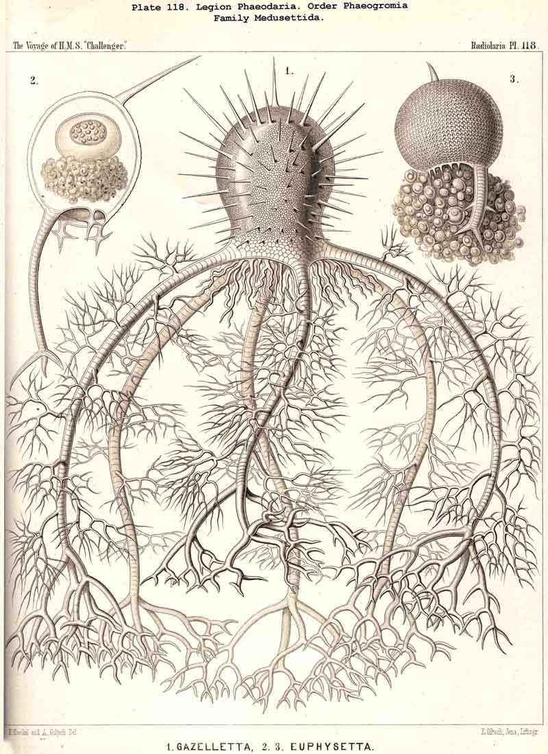 C. Perhaps the phaeodellae are to some extent symbiontes with the PHAEODARIA; the xanthellae present in most other Radiolaria are absent in this legion.
