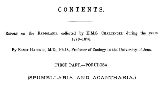 I. Subclass PORULOSA, 6Legion I. SPUMELLARIA vel PERIPYLEA, 6 006 007 008 009Description (pp. 6-9) Legion II. ACANTHARIA vel ACTIPYLEA, 716 716 717 718 719 720 721 722 723 724 725 726 727 728